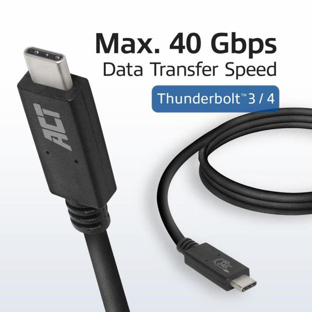 ACT AC7451 е висококачествен USB-C кабел, сертифициран от USB-IF, който поддържа USB4 и Thunderbolt4 технологии. Той е проектиран за бърз трансфер на данни, висока мощност и видео предаване.