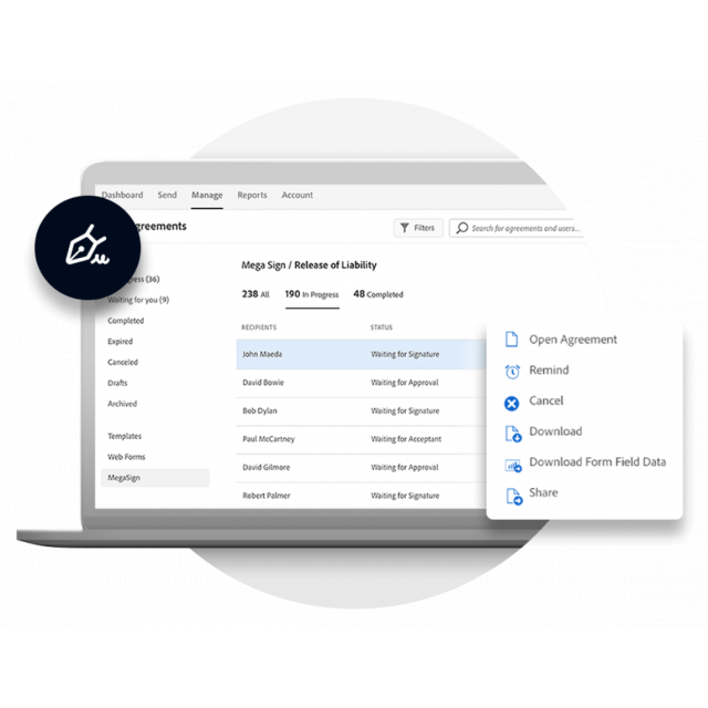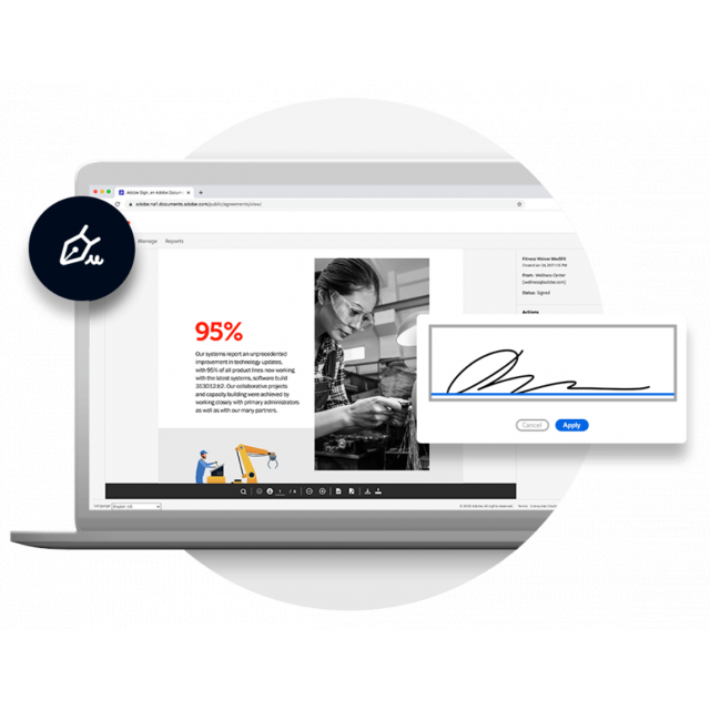 Трансформирайте и ускорете работните си процеси с Acrobat Sign — предпочитаното решение на Microsoft за електронен подпис и единственият инструмент за електронни подписи, който включва функционалността на Adobe Acrobat в един пакет.