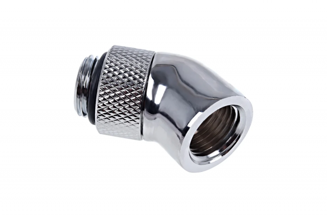 Ъглов адаптер Alphacool Eiszapfen, 45°, G1/4 външна към G1/4 вътрешна резба, Хром