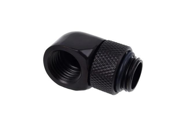 Въртящ се L-конектор Alphacool Eiszapfen, G1/4 AG auf G1/4 IG, Черен мат