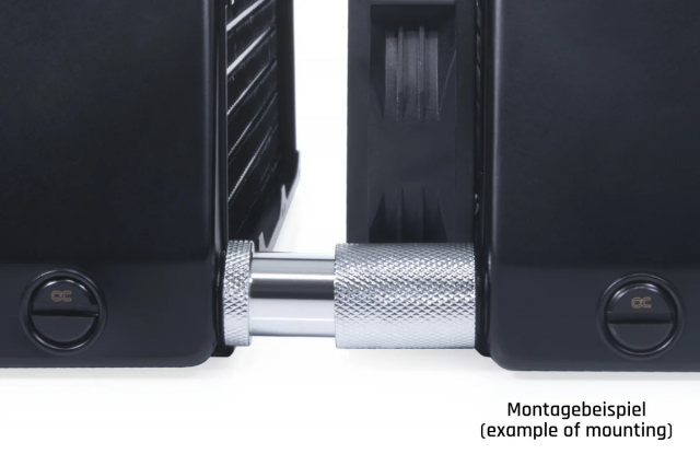 В сравнение с двойните нипели или подобни адаптери, ES D-Plug е запушен, а не завинтен. Необходимата стабилност се осигурява от два плътно прилягащи О-пръстена върху мъжкия компонент на конектора. Разбира се, конекторът е обстойно тестван в лабораторията на Alphacool, като резултатът е, че D-Plug е стабилен до 1,5 бара.