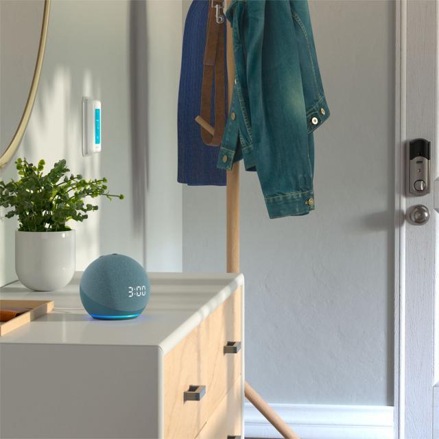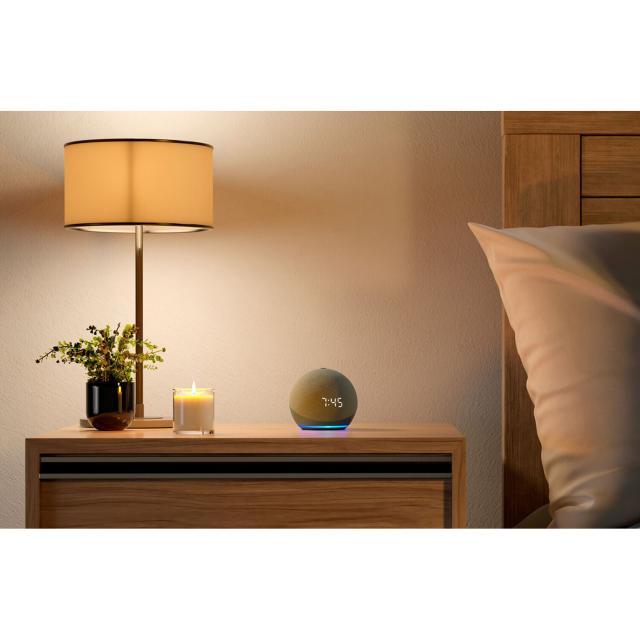 Запознайте се с изцяло новата Echo Dot с часовник - най-популярният ни интелигентен високоговорител с Alexa. Елегантният, компактен дизайн осигурява чист вокал и балансиран бас за пълен звук.