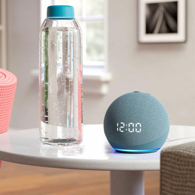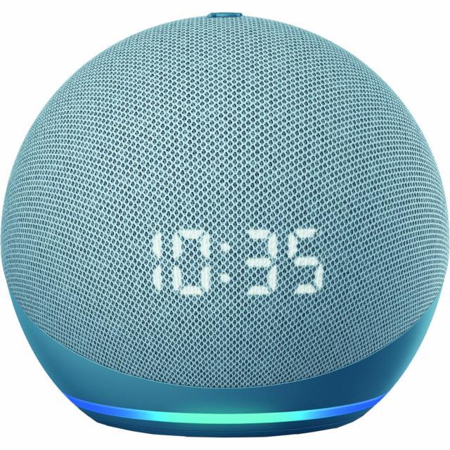 Преносима смарт тонколона Amazon Echo Dot 4 с часовник, гласов асистент, Син