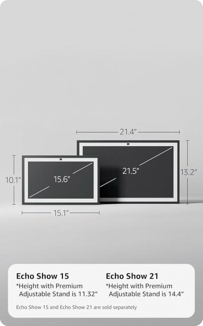- Размери: приблизително 21" диагонал, по-голям корпус спрямо Echo Show 15.