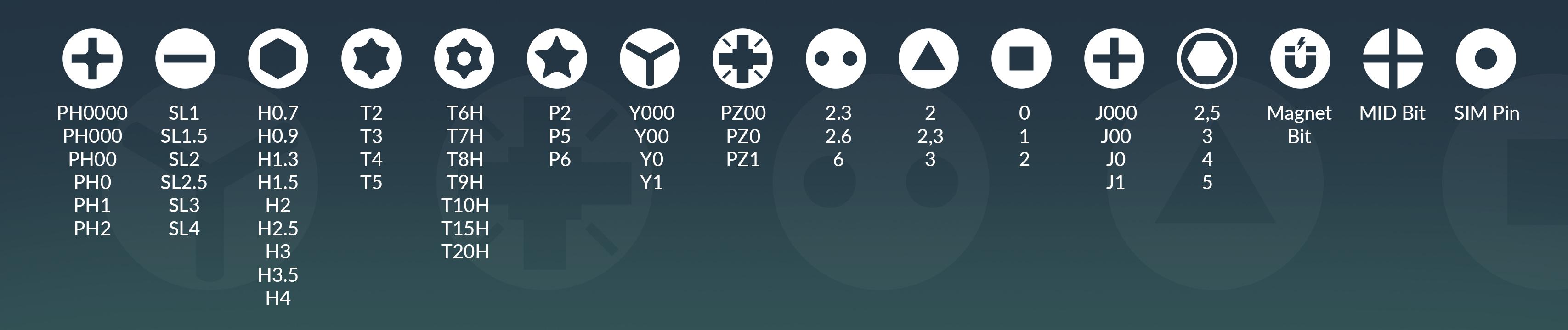 - Пълен комплект за всеки проект – Включва Phillips, Flathead, Hex, Torx, Pentalobe, Y-Type, Pozidriv, U-Type, Триъгълен, Квадратен, JIS и Гаечен ключ, покривайки всички нужди за сглобяване.