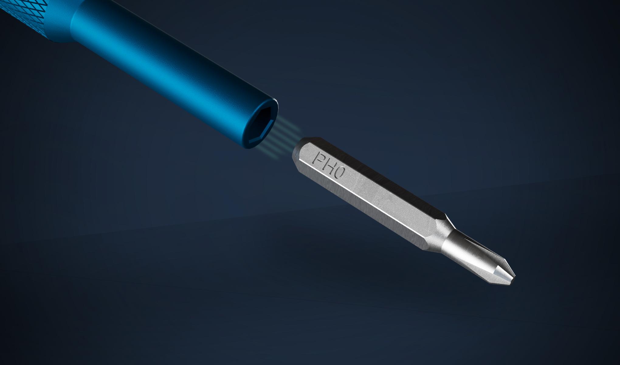 The bits remain reliably in place, while the magnetic force makes it easier to guide and