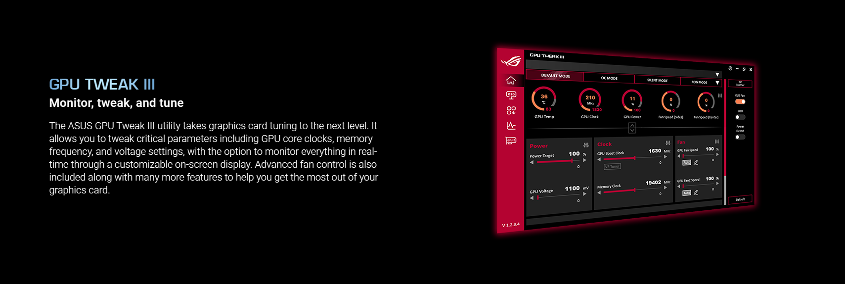 - GPU Tweak III software provides intuitive performance tweaking, thermal controls, and system monitoring