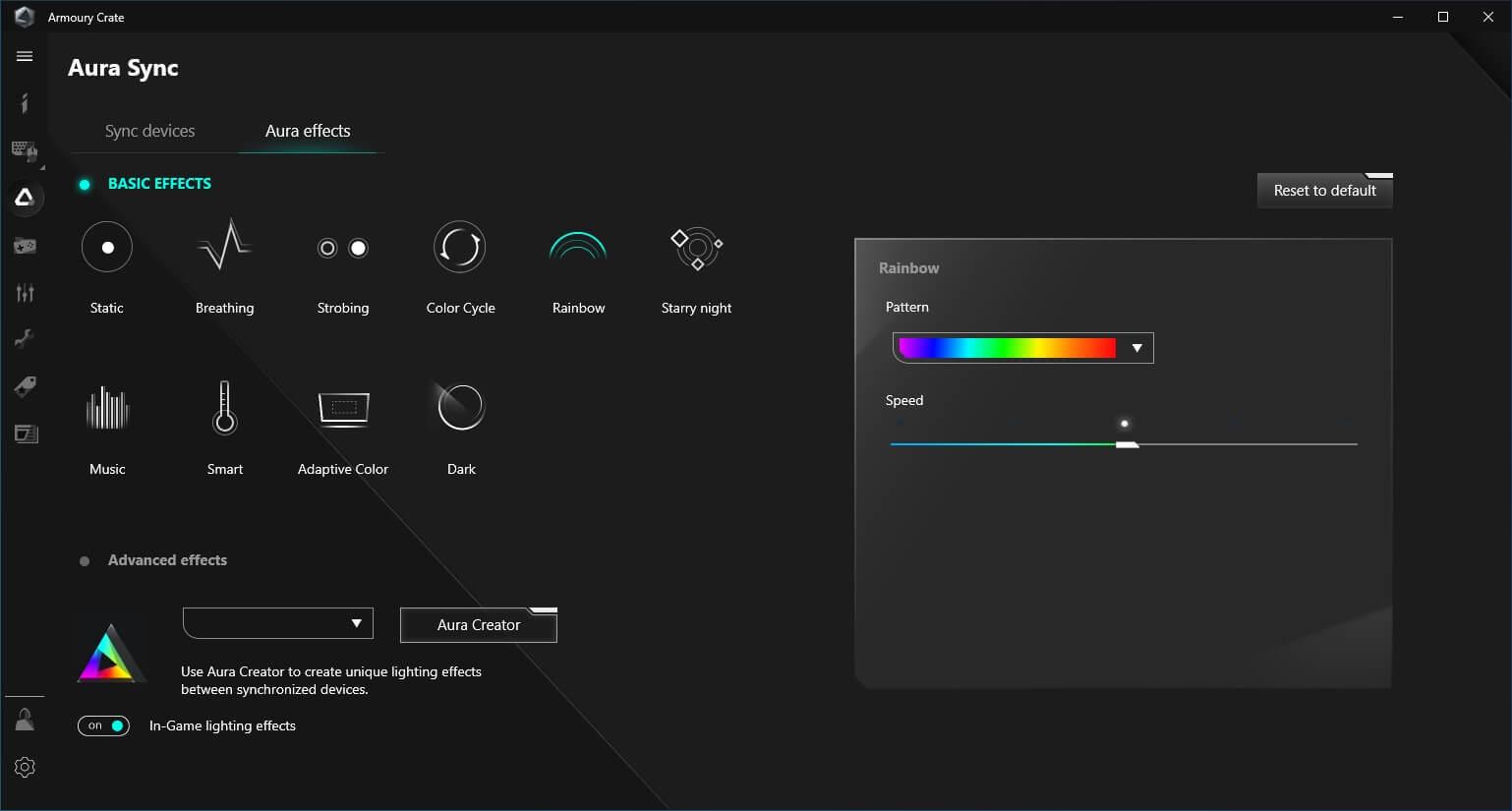 Aura On/Off Mode (Stealth) Easily enable or disable Aura RGB lighting or every onboard LED, for a subdued aesthetic touch. |