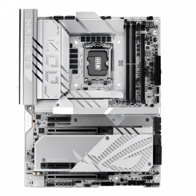 build, the ROG Maximus Z890 Apex features a cobble-gray surface, polished