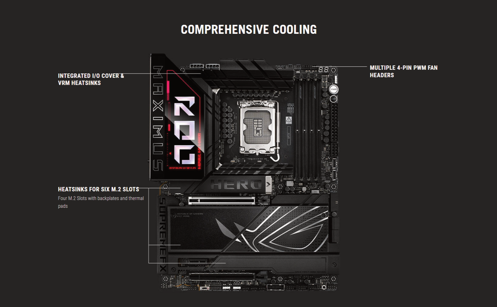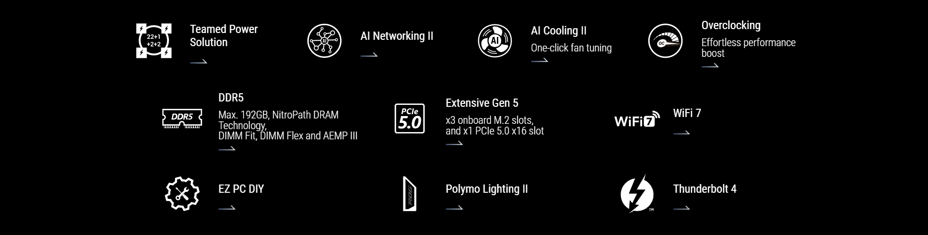 optimized thermal management, extensive PCIe 5.0 support, DDR5 slots and