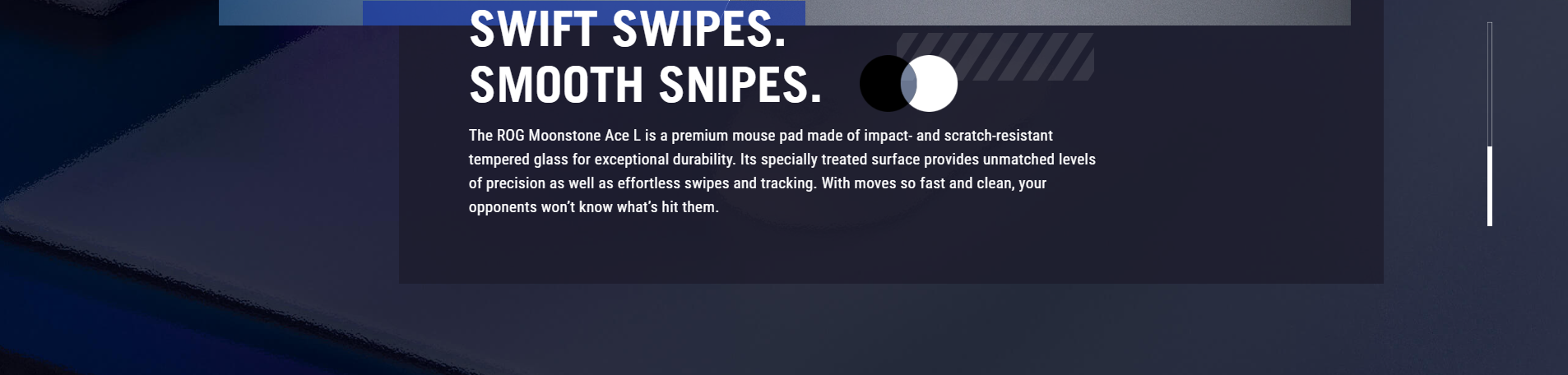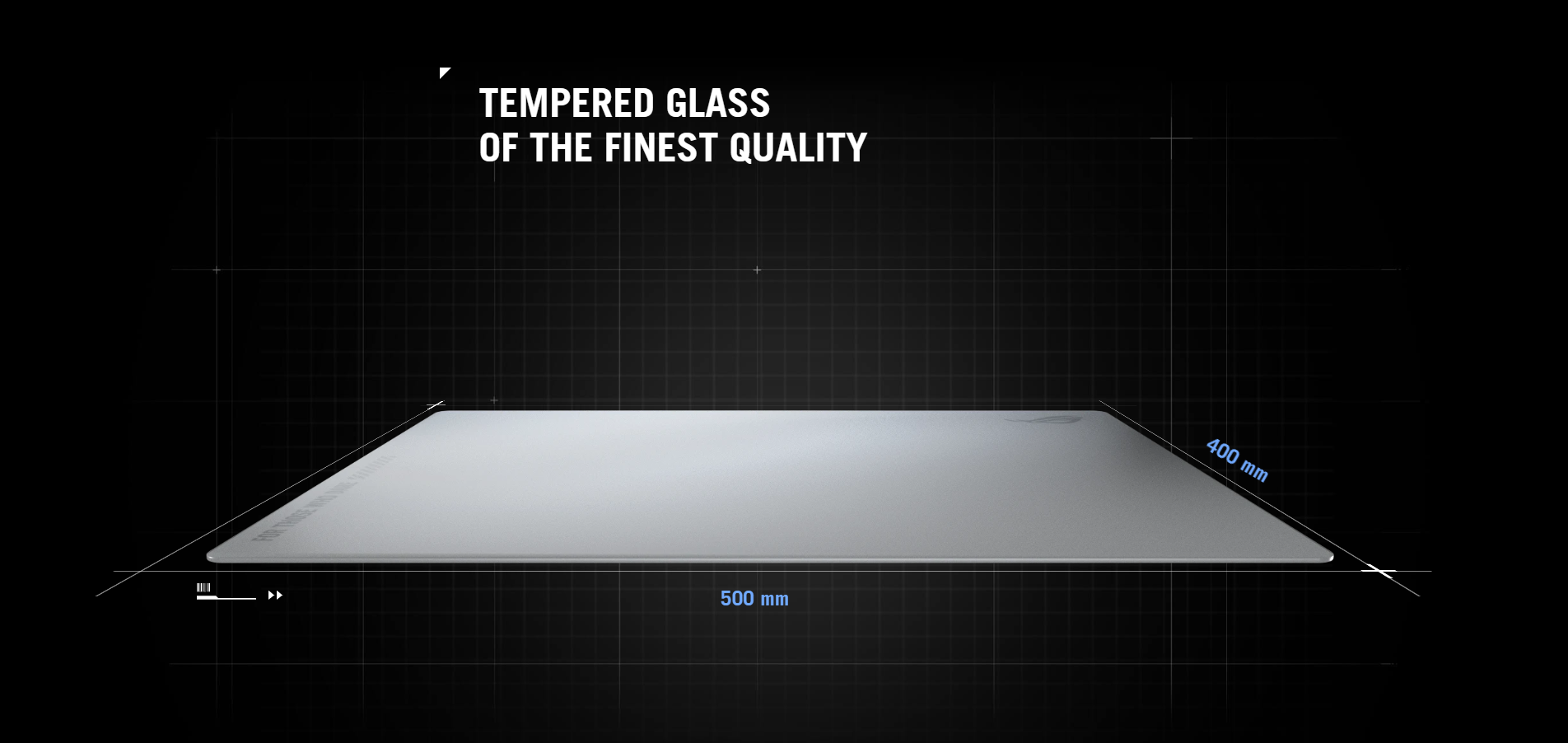 ROG Moonstone Ace L е подложка за мишка, изработена от издържливо закалено стъкло, включваща ултрагладка повърхност,