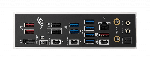 | Back Panel I/O Ports | 2 x USB4 (40Gbps) ports(2 x USB Type-C) 4 x USB 10Gbps ports (3 x Type-A + 1 x USB Type-C with up to 30W PD/PPS Fast-charge)** 6 x USB 5Gbps ports (6 x Type-A) 2 x USB 2.0 ports (2 x Type-A) 1 x HDMI port 1 x Wi-Fi module 1 x Realtek 5Gb Ethernet 2 x Audio jacks 1 x Optical S/PDIF out port 1 x BIOS FlashBack button 1 x Clear CMOS button |