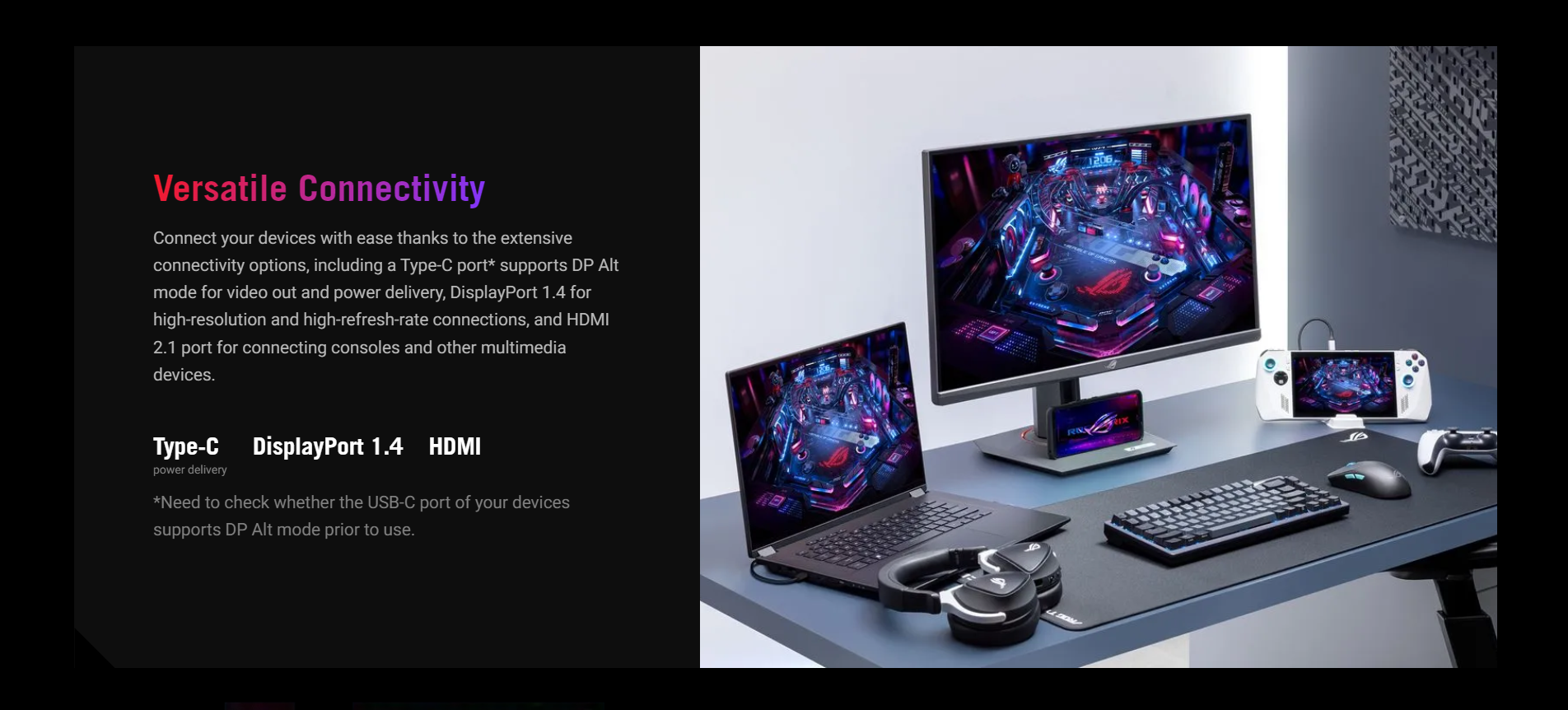 | Signal Frequency | Digital Signal Frequency : USB-C, DisplayPort : 380KHz to 380 KHz (H) / 48Hz to 160Hz (V) HDMI : 30KHz to 380KHz (H) / 48Hz to 160Hz (V) |