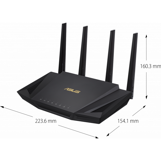 AX3000 Dual Band WiFi 6 (802.11ax) Рутер, поддържащ MU-MIMO и OFDMA технология, с AiProtection Pro мрежова сигурност, захранвана от Trend Micro™, съвместима с ASUS AiMesh WiFi система.
