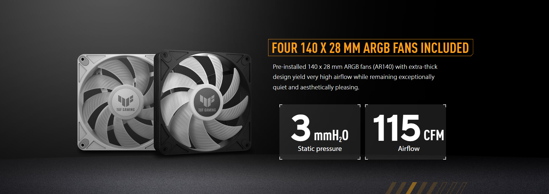 Pre-installed Fans (Front) | 3 x 140 mm PWM ARGB |