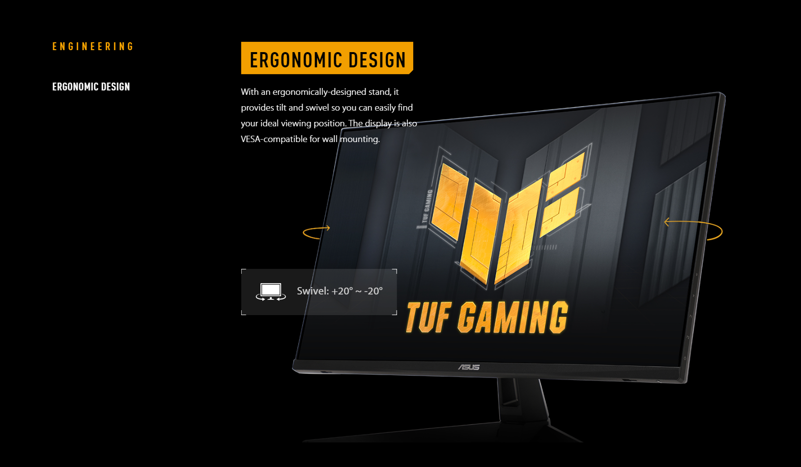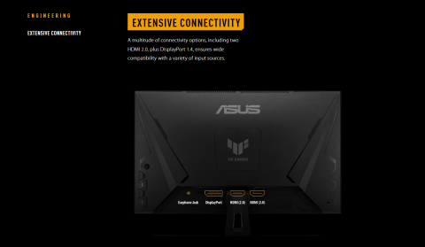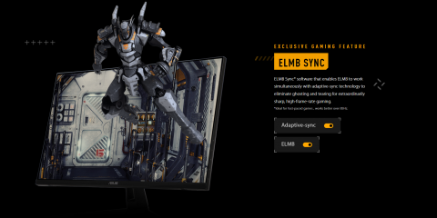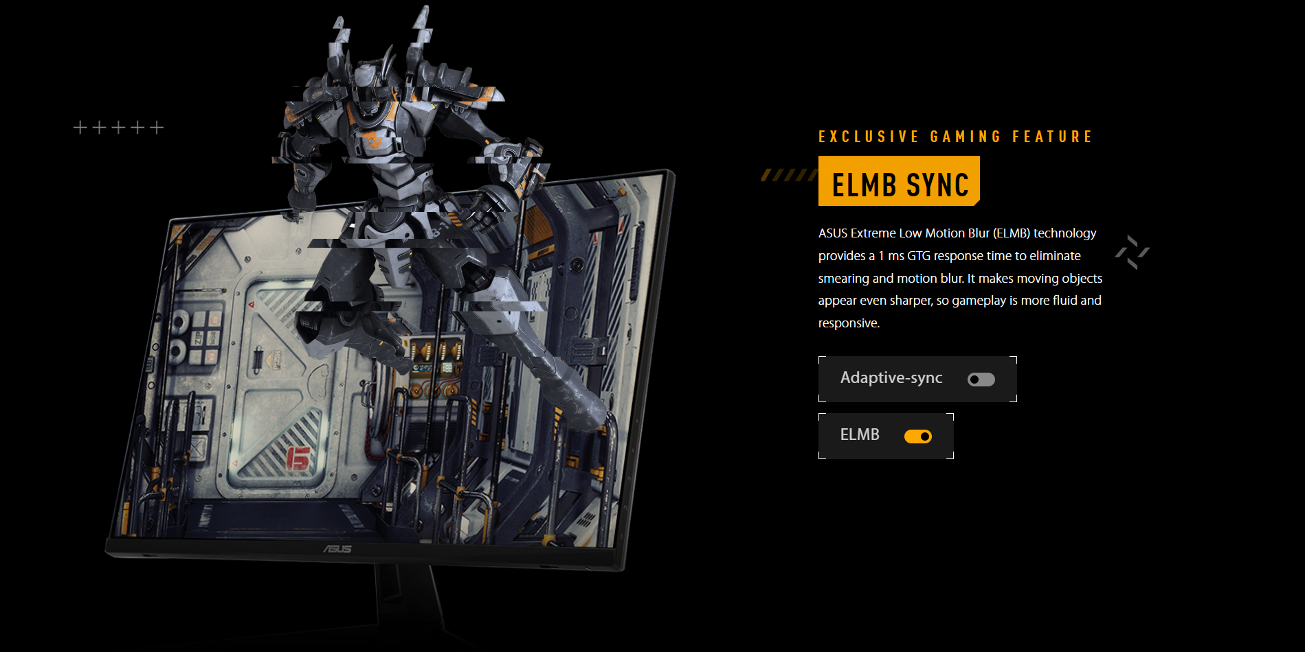 | Video Feature | Trace Free Technology : Yes GameVisual : Yes Color Temp. Selection : Yes(4 modes) GamePlus : Yes HDCP : Yes, 2.2 Extreme Low Motion Blur : Yes ELMB Sync: Yes VRR Technology : Yes (Adaptive-Sync) GameFast Input technology : Yes Shadow Boost : Yes DisplayWidget : Yes, DisplayWidget Center Low Blue Light : Yes |