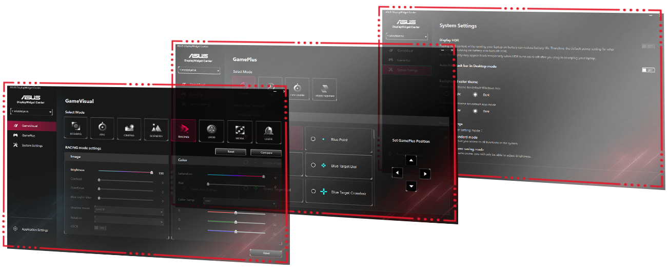DisplayWidget Center software upgraded the user interface so that users can easily change monitor settings via a mouse ― so there’s no need to access the OSD menu.