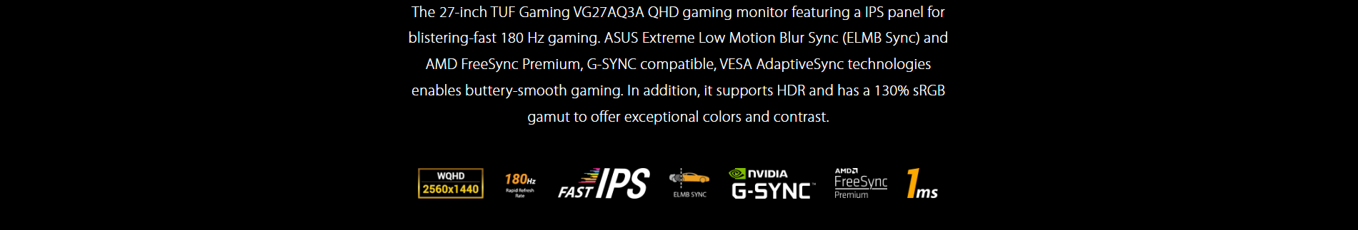 Монитор ASUS TUF Gaming VG27AQ3A 27" IPS QHD (2560x1440), 180Hz, 1ms 130% sRGB, Adaptive-Sync(FreeSync) / G-Sync Compatible
