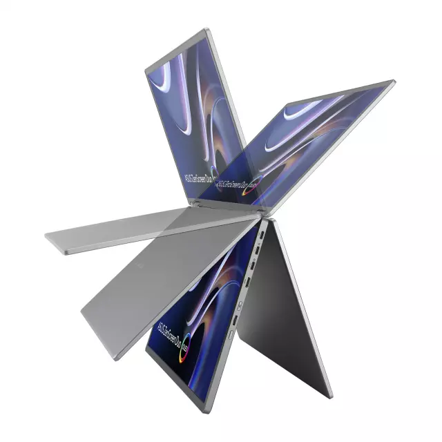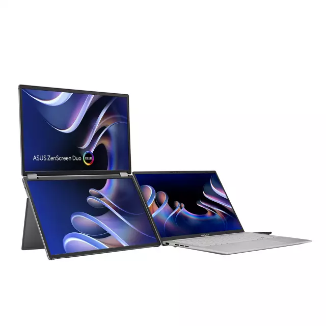 ASUS ZenScreen Duo OLED MQ149CD 360° e Сгъваем преносим монитор - двоен 14-инчов дисплей, 16:10, 1920x1200 FHD, OLED панели, DisplayHDR 400 True Black, 100% DCI-P3, Delta<2, 2 x USB Type-C, mini-HDMI, стойка и стандартен отвор за статив.