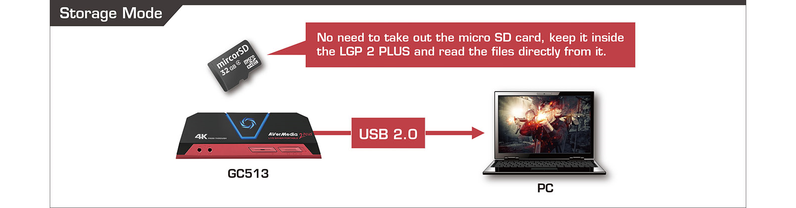 1. LGP2 PLUS does not support viewing/recording/streaming of HDCP protected signals 2. Micro SD Class 10 card is required for PC-Free recording, Micro SD card is not included. 3. Micro SD maximum capacity support: 128GB 4. Micro SD Supported formats: FAT32 format / exFAT format - When using the "FAT32 format" microSD card, Due to the specification of FAT32, movies are divided and saved every 4 GB (about 25 minutes). - Continuous recording is possible when using "exFAT format" microSD card |
