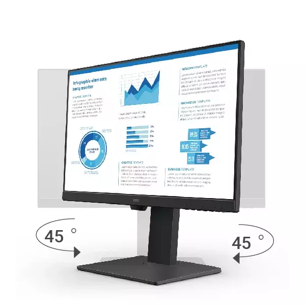 The monitor's tilt, pivot, swivel, and height adjustment offer easy customization for flexible working and learning in an ideally comfortable user environment.