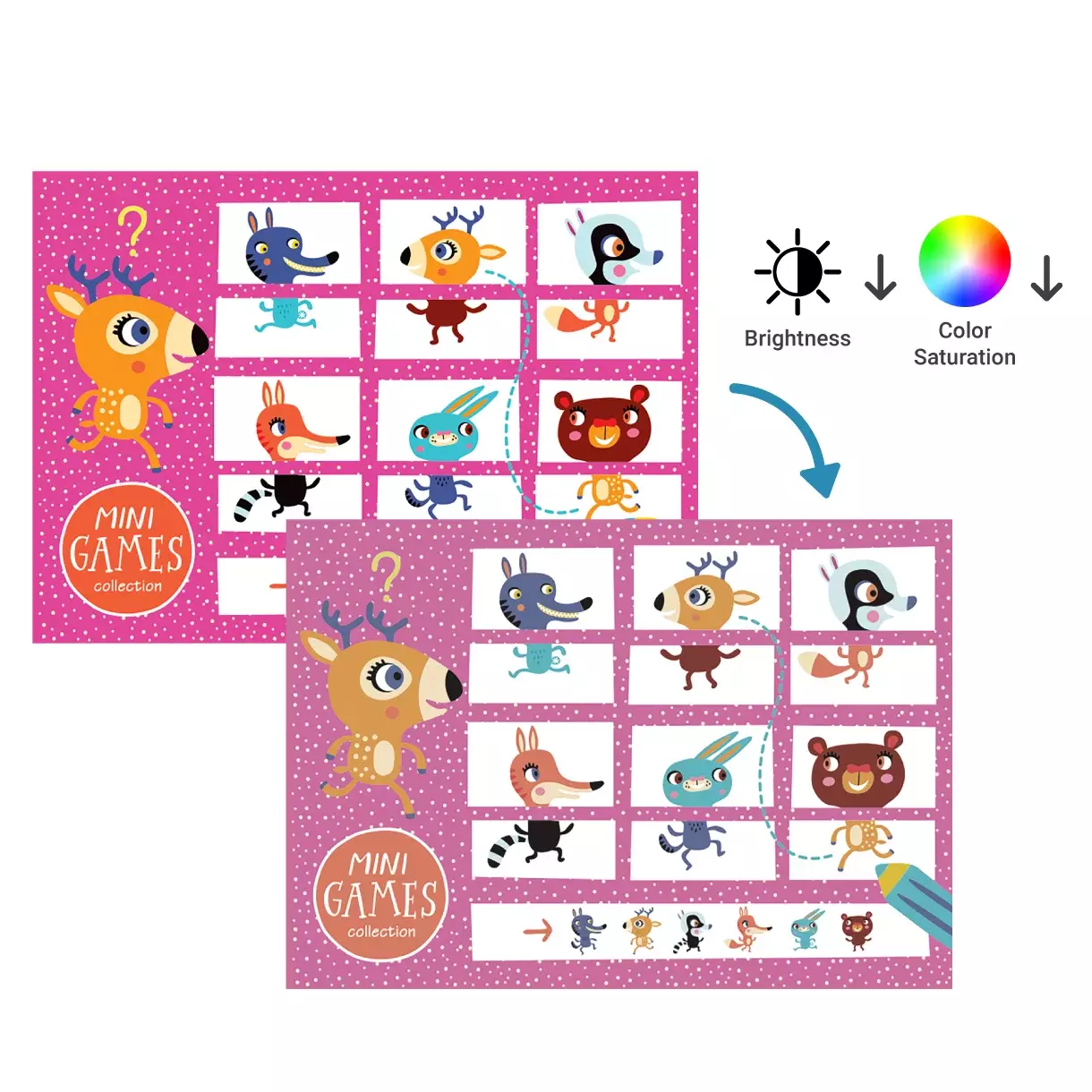 Specially-tuned to lowered brightness and color saturation to protect sensitive eyes.