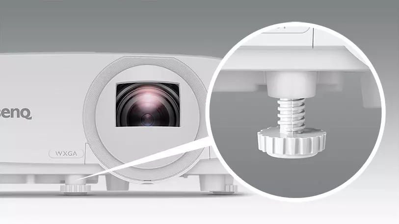 Far superior to projectors with only one adjustment foot, the triple adjustment feet, including a retractable foot, enhance flexibility in a wide variety of meeting rooms.