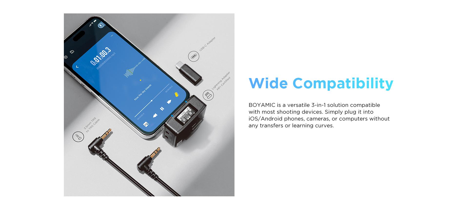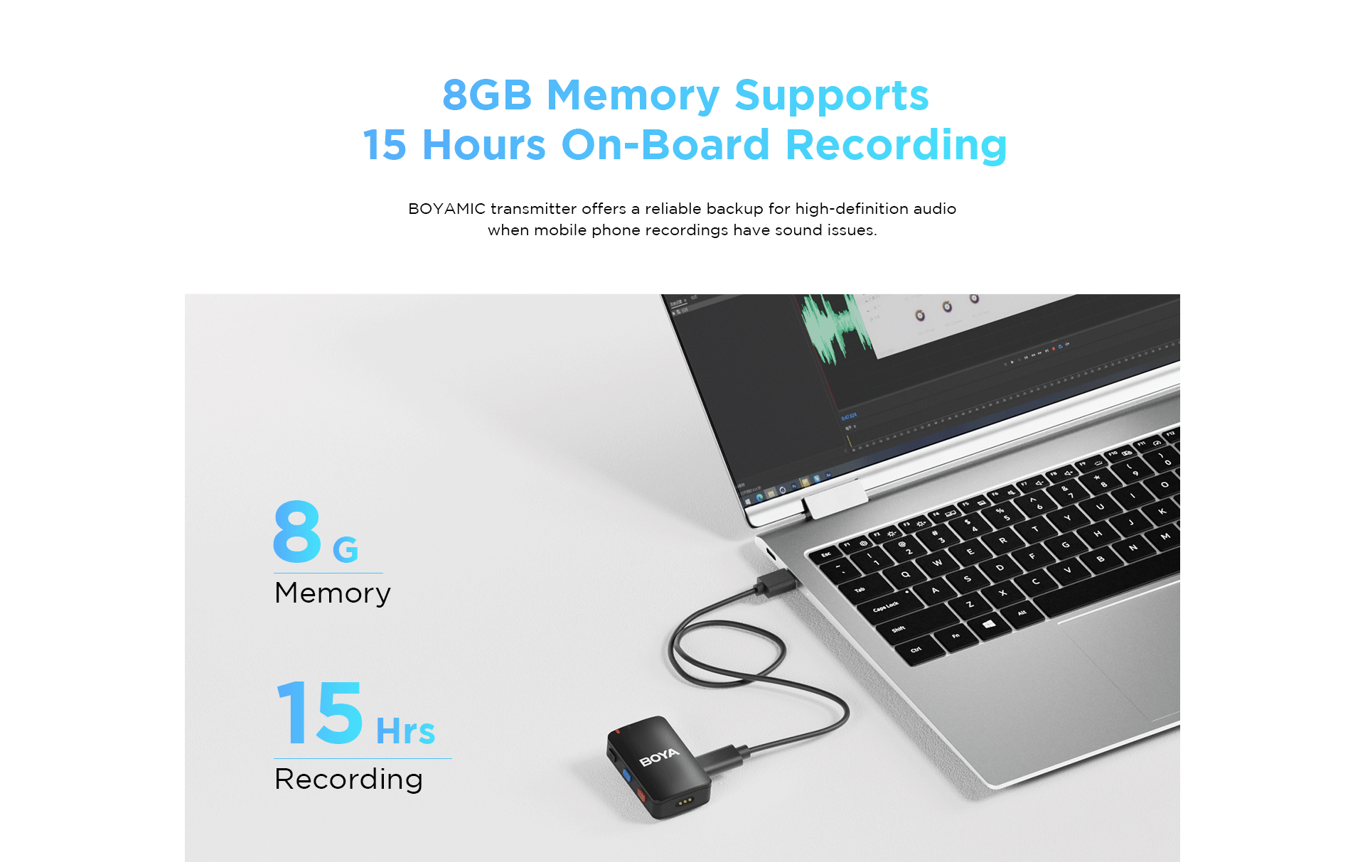 BOYAMIC е преносима 2.4 GHz безжична микрофонна система. Тя разполага с високоефективно шумопотискане, което подобрява