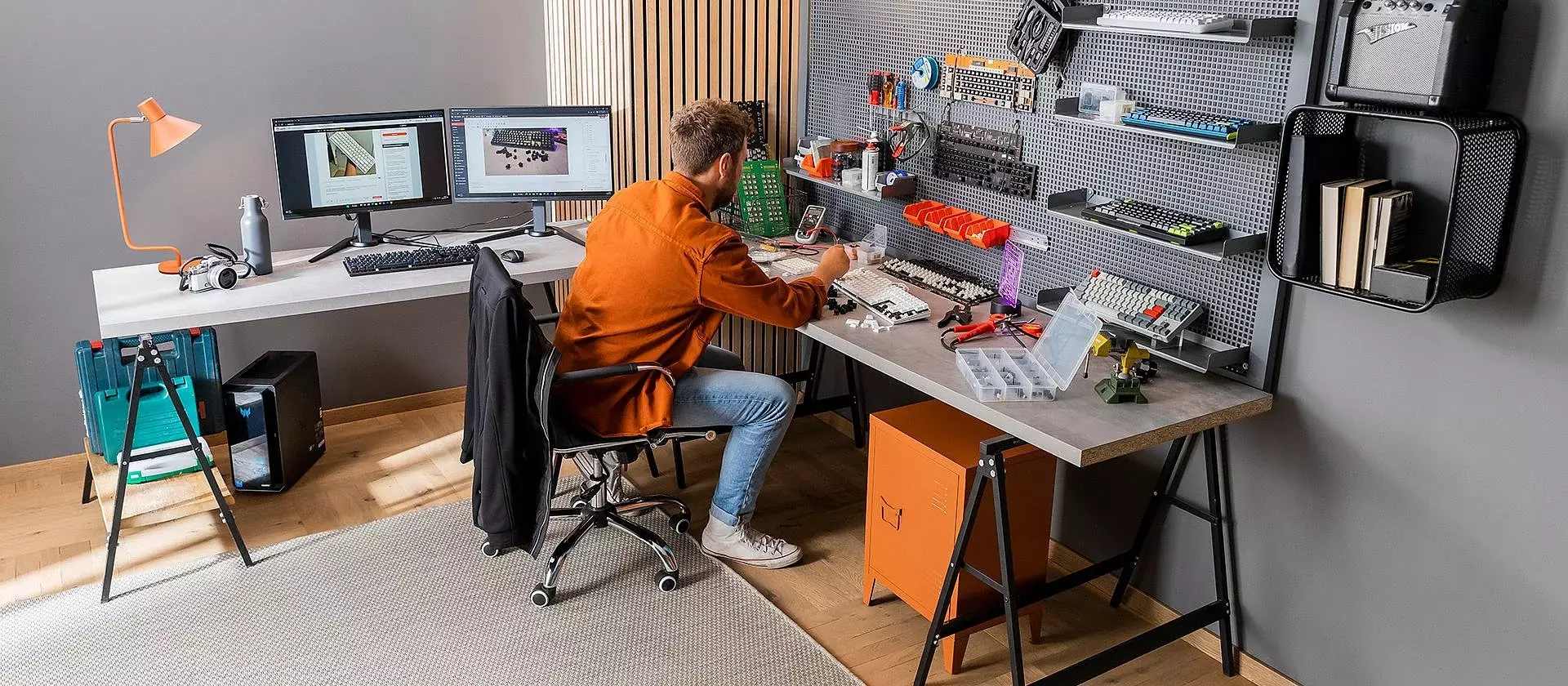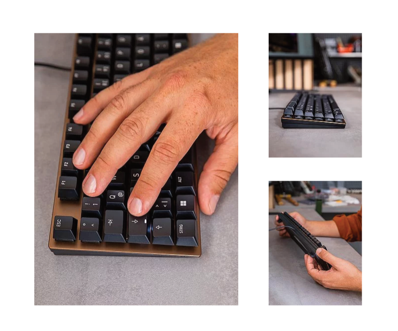 surface. The metal plate not only gives the mechanical keyboard an elegant look,