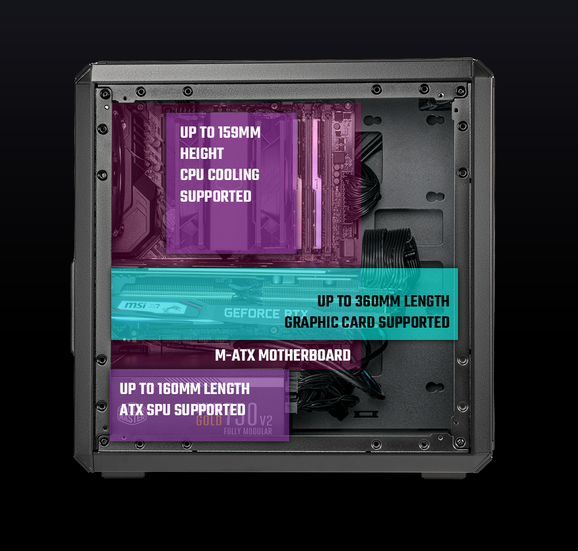 The Q300L V2 case supports CPU coolers up to a height of 159mm,