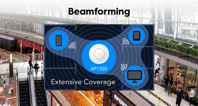 Beamforming technology tracks connected devices' directions and boost signal towards them, improves coverage performance.