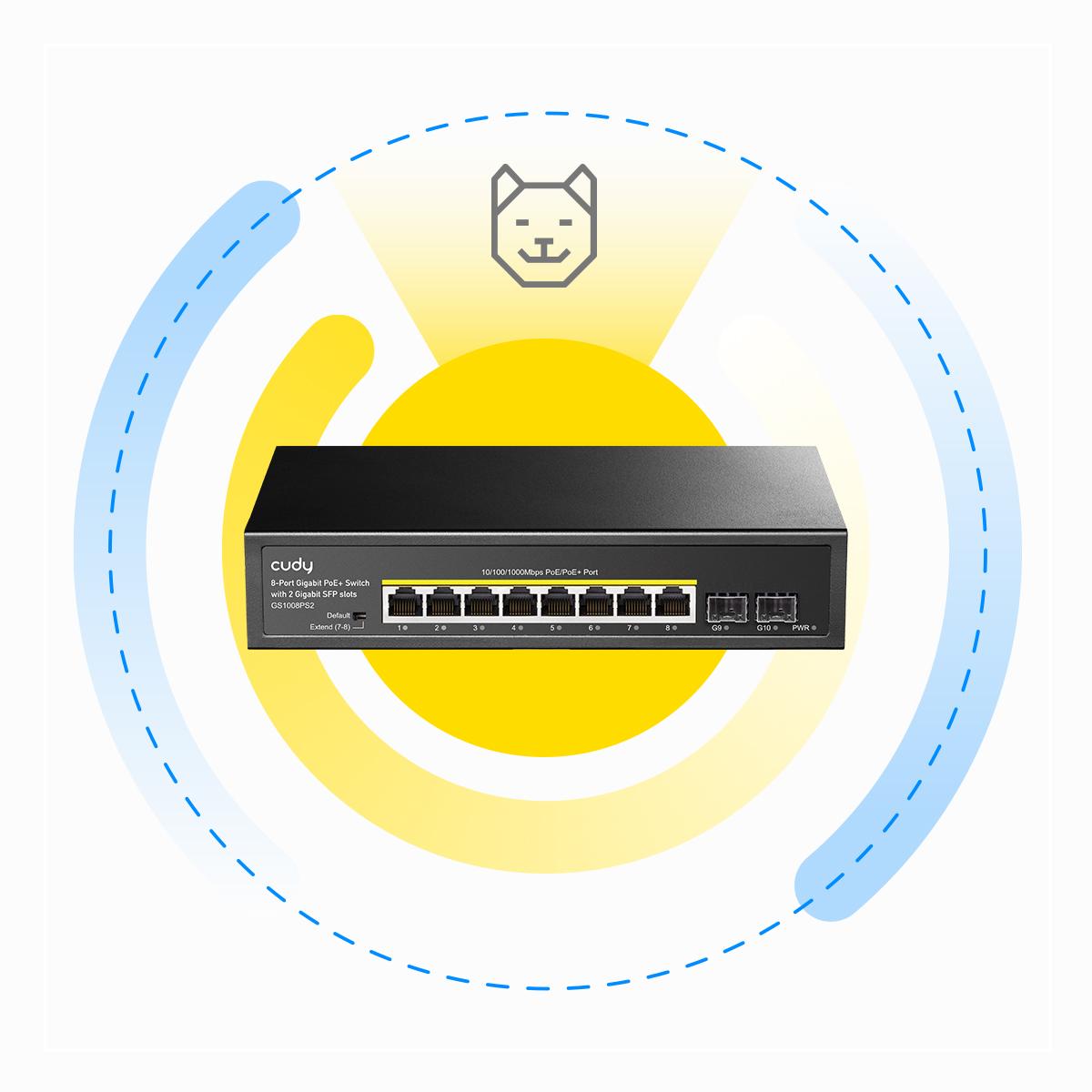 Суич Cudy GS1008PS2, L2, 8 x Gigabit Ethernet PoE ports, 2 x SFP, 128MB RAM