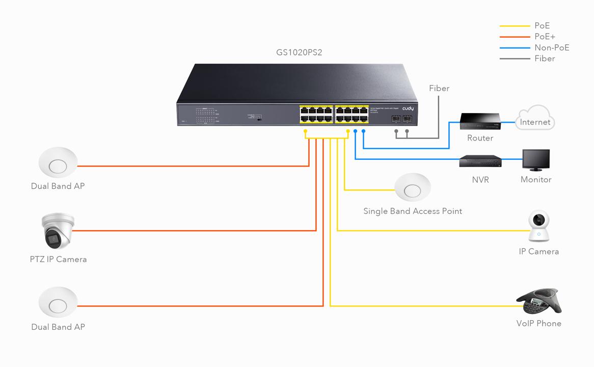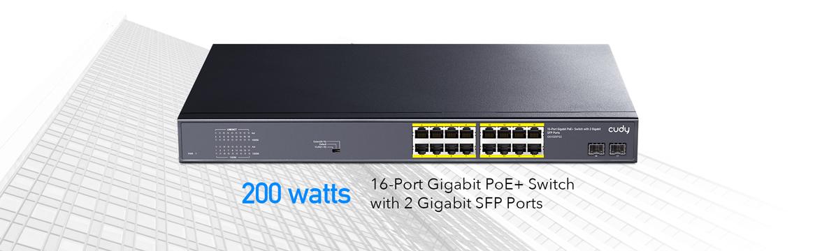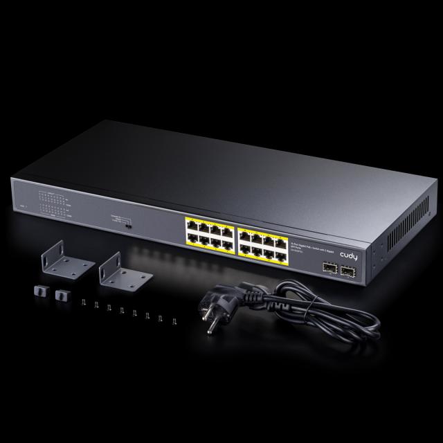 Суич Cudy GS1020PS2, 16 x Gigabit PoE, 2 x Gigabit SFP