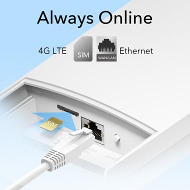 With an integrated 4G LTE modem and a built-in AC1200 dual-band WiFi, all you need to do is insert a micro SIM card and turn on the Router. Enjoying fast, stable Wi-Fi at home has never been easier.