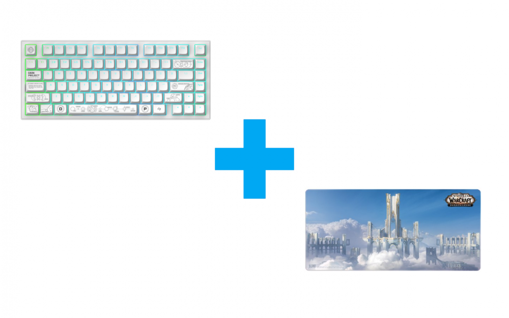 Комплект клавиатура и геймърски пад Dark Project ALU81A Terra Nova White RGB + World of WarCraft Shadowlands