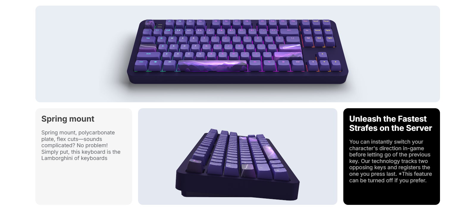 | Lifetime | 80 Million Keypresses | Stabilizers | Plate-mounted, Pre-lubed |