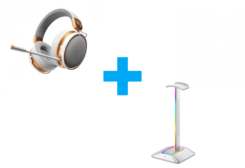 Комплект слушалки и поставка за слушалки Dark Project Sono Wireless - White + FragON 2U RGB