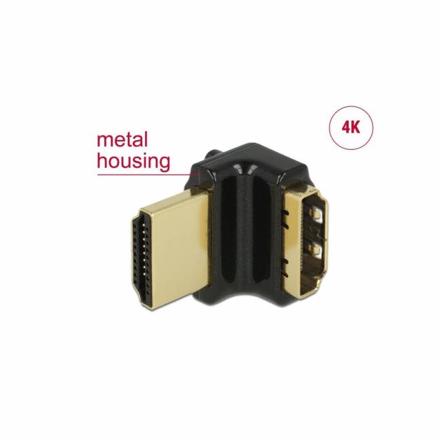 Адаптер Delock 65663, HDMI-A женско с Ethernet - HDMI-A мъжко, 4K, 90°, Черен