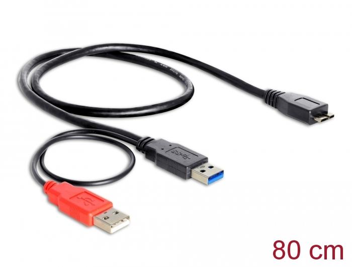 Кабел Delock Y-cable, USB-A мъжко - USB 3.0 Micro-B мъжко, (USB 3.0), USB-A(power), 5 GBit/s, Черен