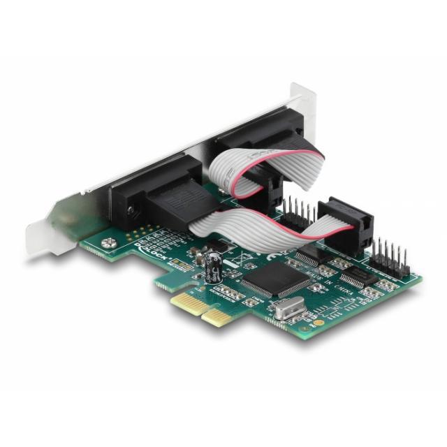 The PCI Express card by Delock expands a PC by four external serial RS-232 ports. Different devices such as scanner, protocol converter, IoT devices etc. can be connected to this card.