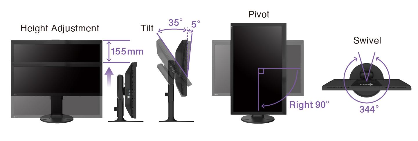 | Color Gamut (typical) | Adobe RGB: 99%, DCI-P3: 98% | Height Adjustment Range | 155 mm | |