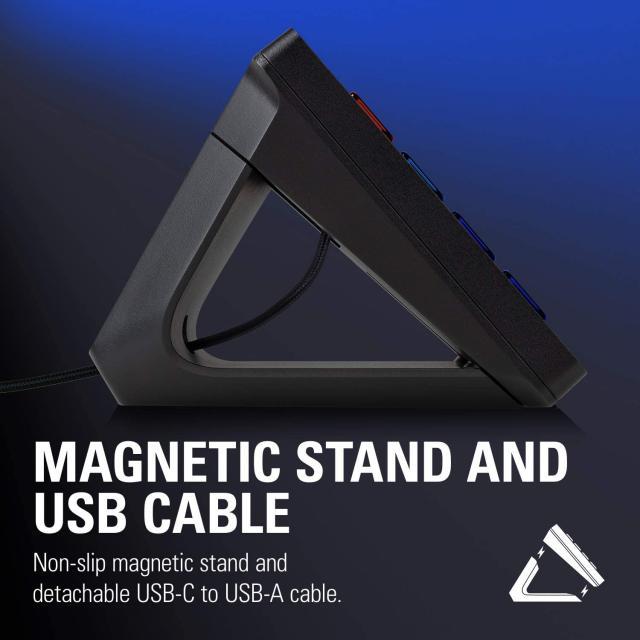 Контролера Elgato Stream Deck включва 32 бутона, всеки от които е програмируем с безкрайни възможности за персонализиране, a също така е LCD екран. Можете чрез изображения да пояснявате функцията на дадени бутони. Устройството също така чрез софтуер включва и директна интеграция с YouTube, Twitch, Twitter, Mixer, OBS Studio, Soundboard, XSplit, Streamlabs, TipeeeStream и други.