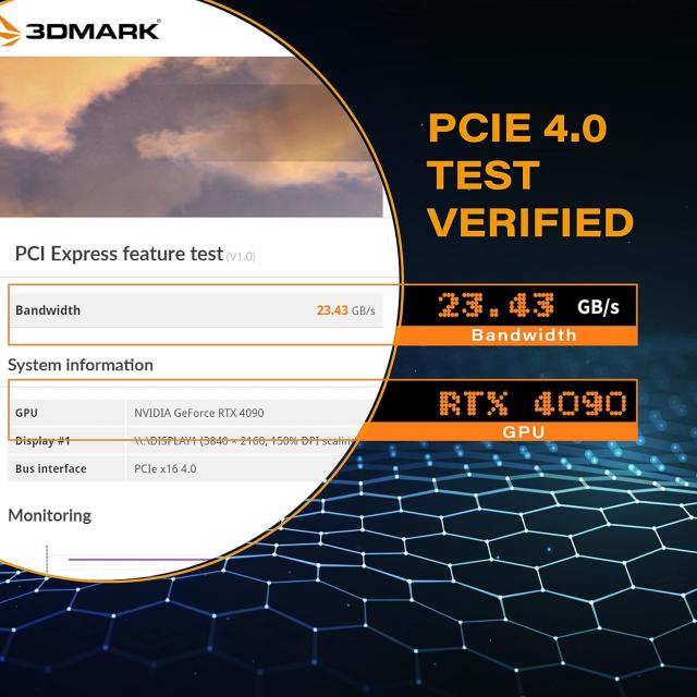 • Висока стабилност и пълна скорост на PCIe Gen4 x16, plug-and-play. Обратна съвместимост с PCIe 3.0, PCIe 2.0 и PCIe 1.0.
