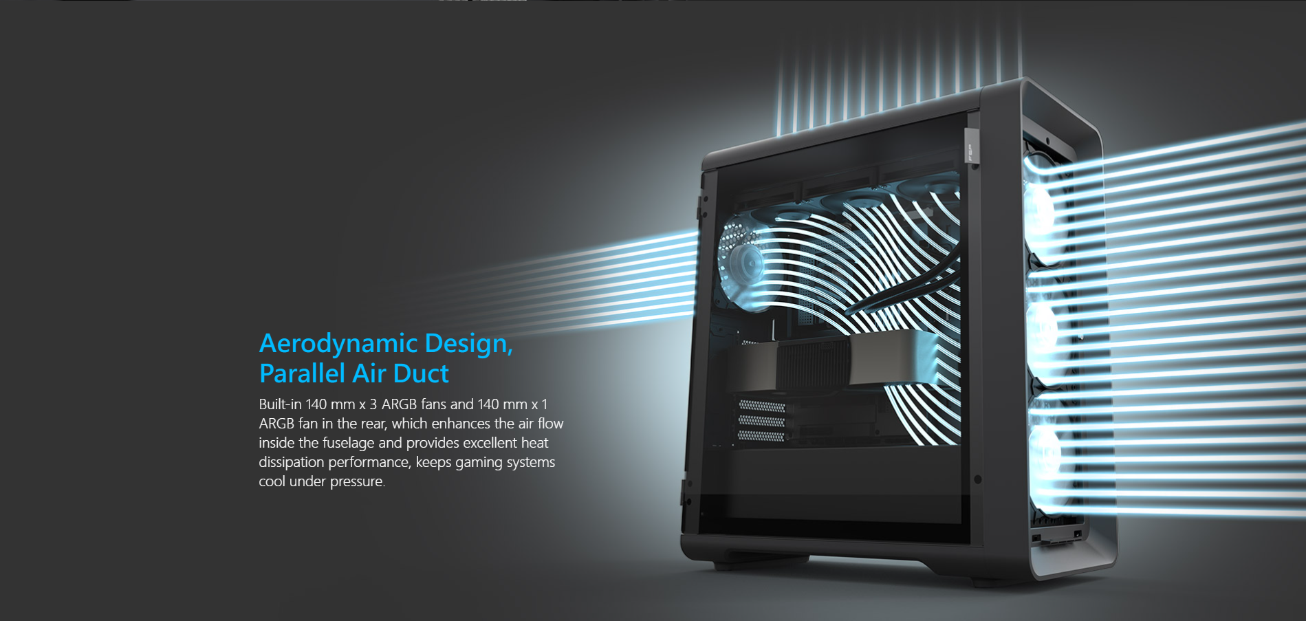 | Fan Including(pre-install) | Front: 140mm ARGB x 3(no controller, need sync with MB) Rear: 140mm ARGB x 1 |