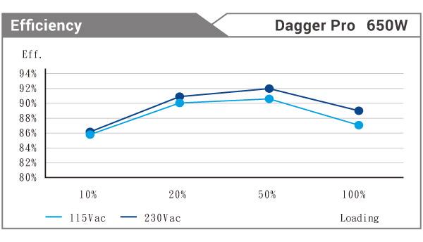 Powerful +12V Single Rail for your VGAVGA card is a component which needs greedy and stable power supporting most. The compact size DAGGER PRO series comes with a single +12V rail design that offers VGA cards full power individually and to avoid any overloading conditions. |