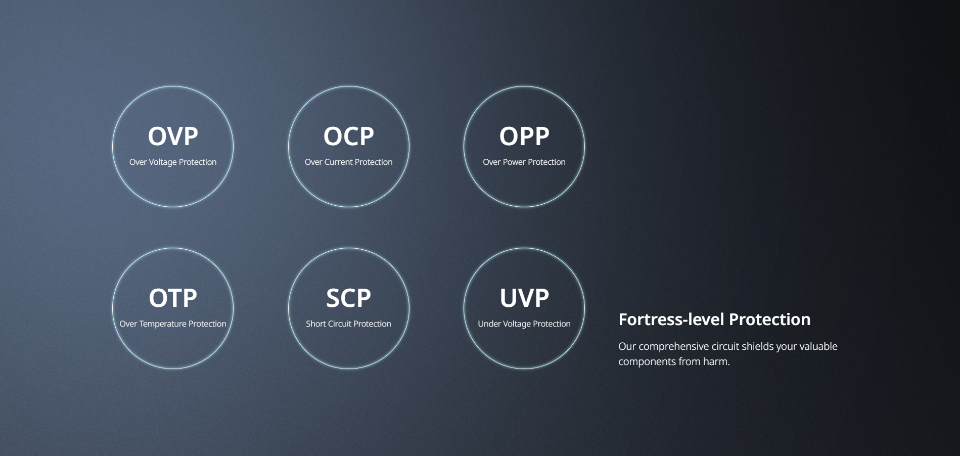| Protection | OCP, OVP, SCP, OPP, UVP, OTP |