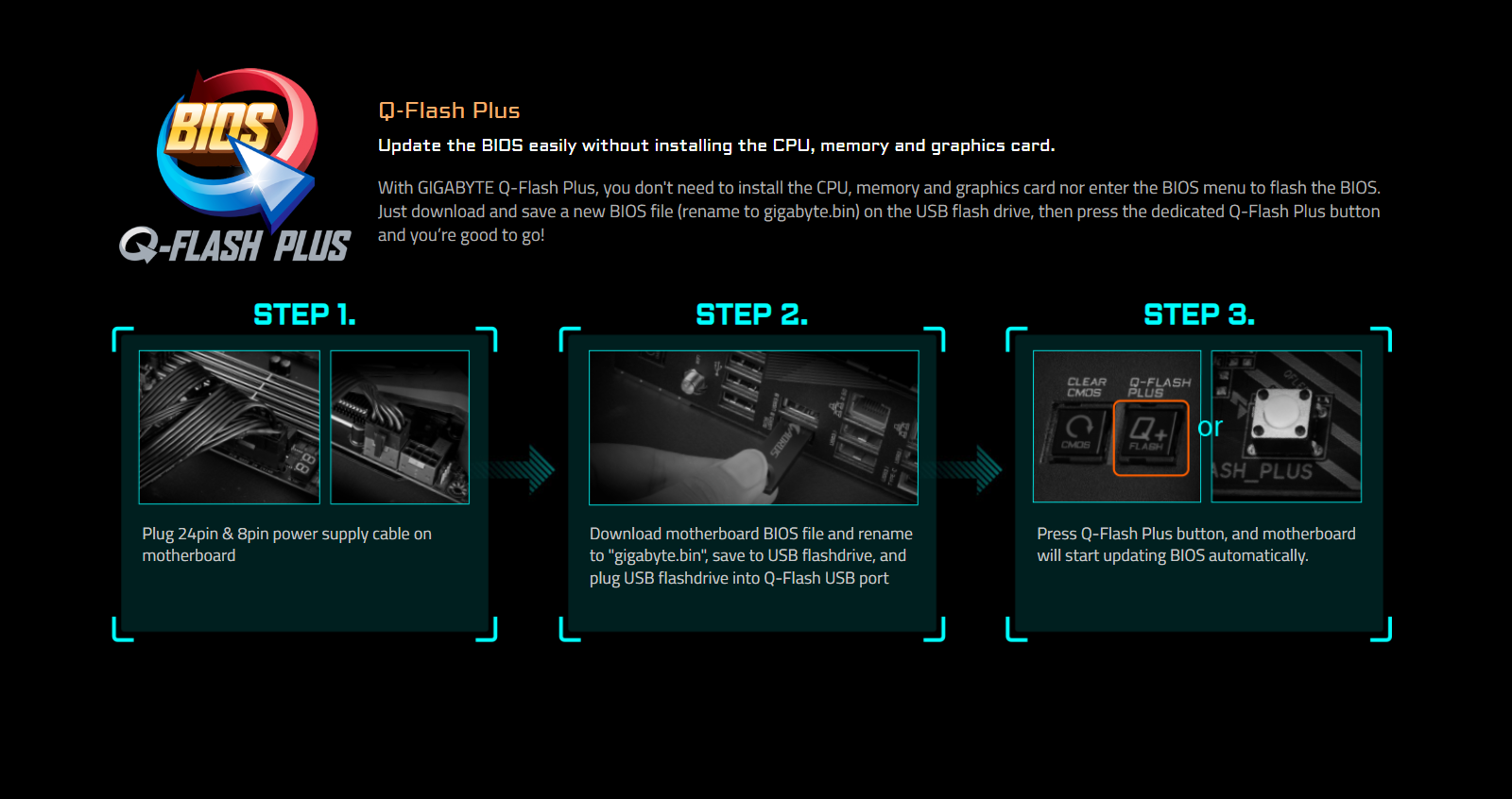 - Q-Flash Plus:Update BIOS Without Installing the CPU, Memory and Graphics Card