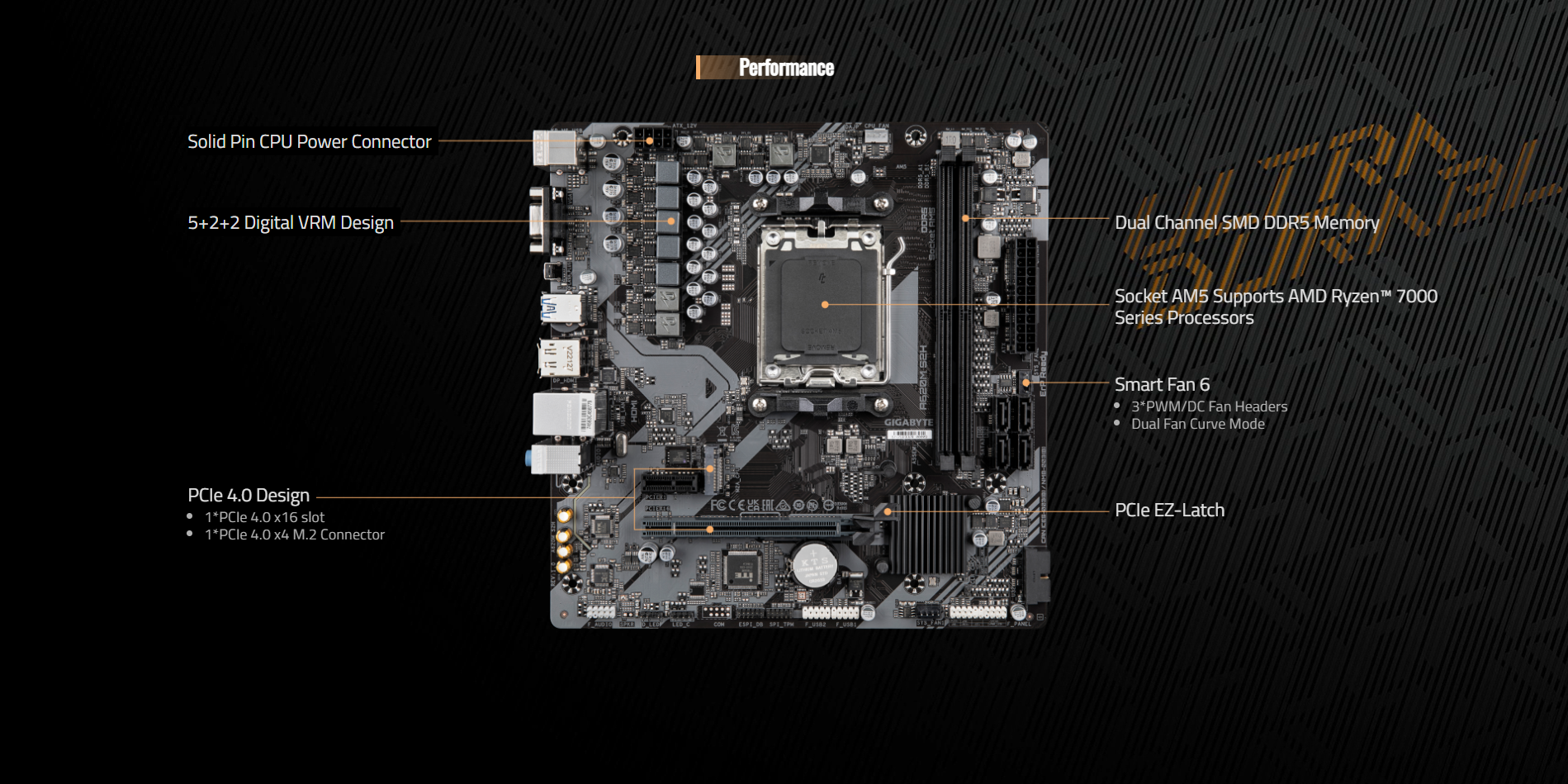 - AMD Socket AM5:Supports AMD Ryzen 7000 Series Processors
