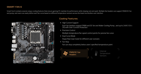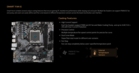 - Smart Fan 6:Features Multiple Temperature Sensors, Hybrid Fan Headers with FAN STOP