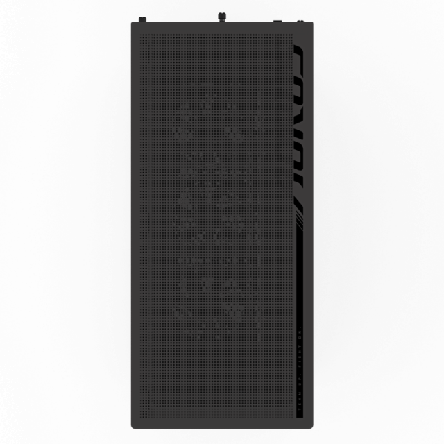 dissipation. The bottom, top, and front panels all feature vented designs, enabling ample intake